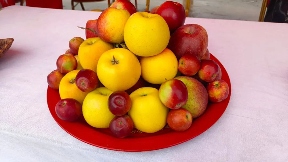 活動現(xiàn)場,不僅有雪桃鮮果,還有雪桃干、雪桃酒等衍生產(chǎn)品。除了明星產(chǎn)品麗江雪桃,我們還看到了很多新品種的水果,比如從瑞士引進、切開后呈紅色的紅心蘋果紅色之愛,只有車厘子大小、口感脆甜的日本乙女蘋果,以及汁水豐富的紅皮梨,都以新鮮的口感豐富了人們的味蕾。