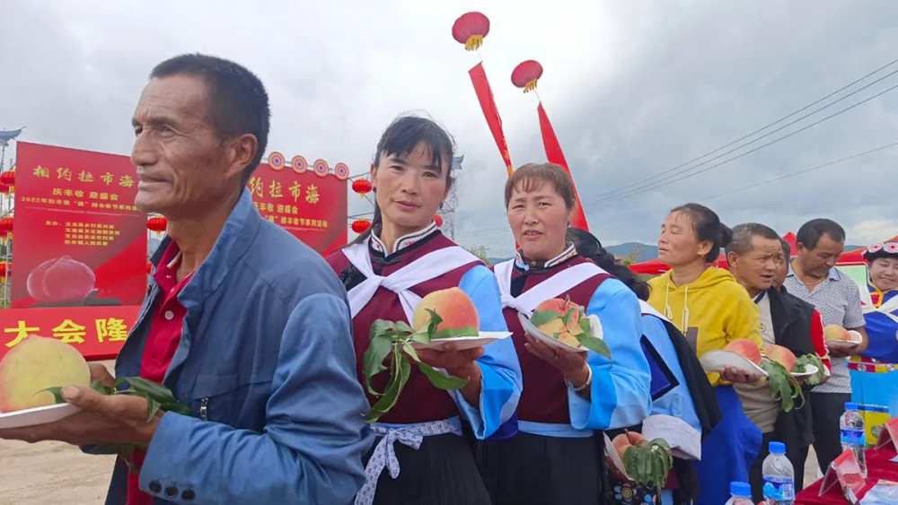拉市鎮(zhèn)“桃”醉豐收節(jié)的舉辦,旨在通過一系列現(xiàn)代農(nóng)業(yè)展示、鄉(xiāng)村美食品鑒、民俗文化表演、農(nóng)民體育競賽等特色活動,進一步提升麗江雪桃品質(zhì)、鞏固提升麗江雪桃的品牌形象,同時打造拉市農(nóng)民豐收節(jié)品牌,打響2022年拉市雪桃上市銷售“第一炮”。