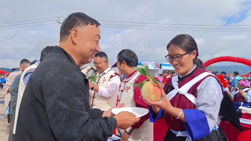 上午9點,玉龍縣拉市鎮(zhèn)“桃”醉豐收節(jié)在瑞祥雪桃開發(fā)有限公司基地熱鬧舉行?,F(xiàn)場不僅有精彩的文藝匯演及各種蔬菜瓜果的展示,來賓們還共同見證了2022年麗江雪桃“桃王”、“桃后”的誕生。